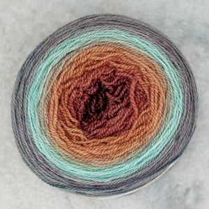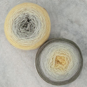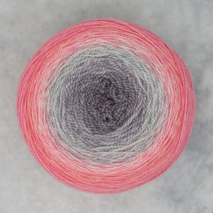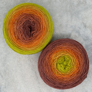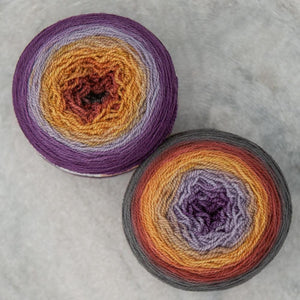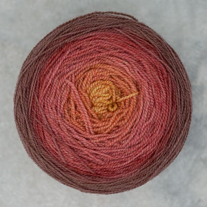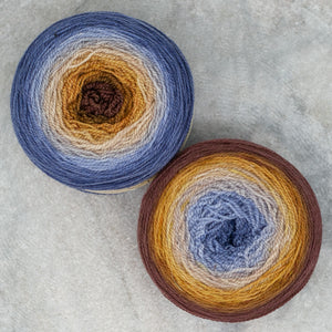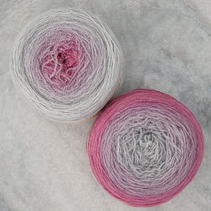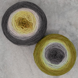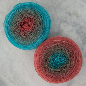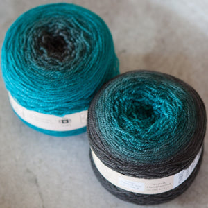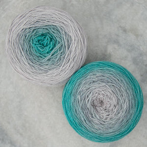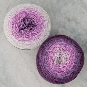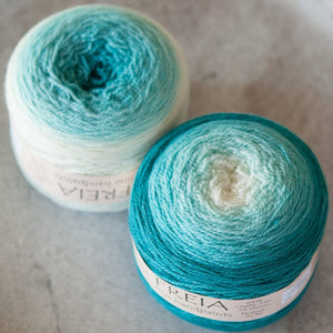 Freia Handpaints Ombre colors have a slow transition from one color to another along the full length of the skein. These colorways are a wonderful choice for dramatic shawls, scarves and for use in colorwork.
