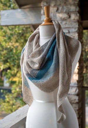 This light and airy take on the traditional triangular shawl is especially long and luxurious. It’s worked in garter stitch on the bias, with dynamic rays of colour shaped by short rows. It knits up quickly, providing a marvellous playground for your favourite colours. The deliciously light ITO Kinu makes this shawl perfect for summer knitting, and the pure silk yarn will reward you with a luxurious accessory you’ll wear year round.