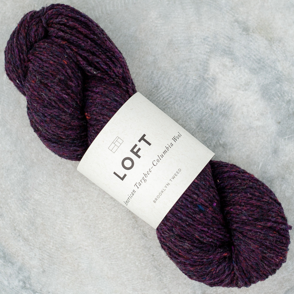 LOFT is a light and bouncy soft-spun 2-ply fingering weight yarn designed by Brooklyn Tweed. It is 100% american grown wool from Wyoming-grown Targhee-Columbia sheep and spun in the woolen mills of historic Harrisville, New Hampshire. LOFT is designed with a focus on colorwork and lace, with a lightness that mimics handspun yarns.